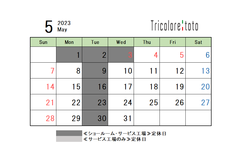5月定休日のご案内