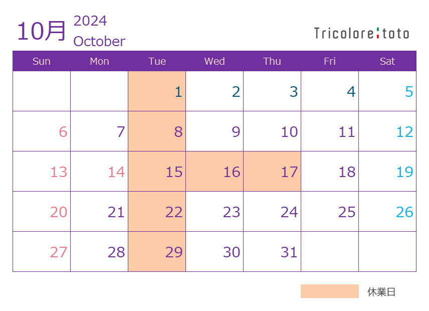 10月定休日のご案内
