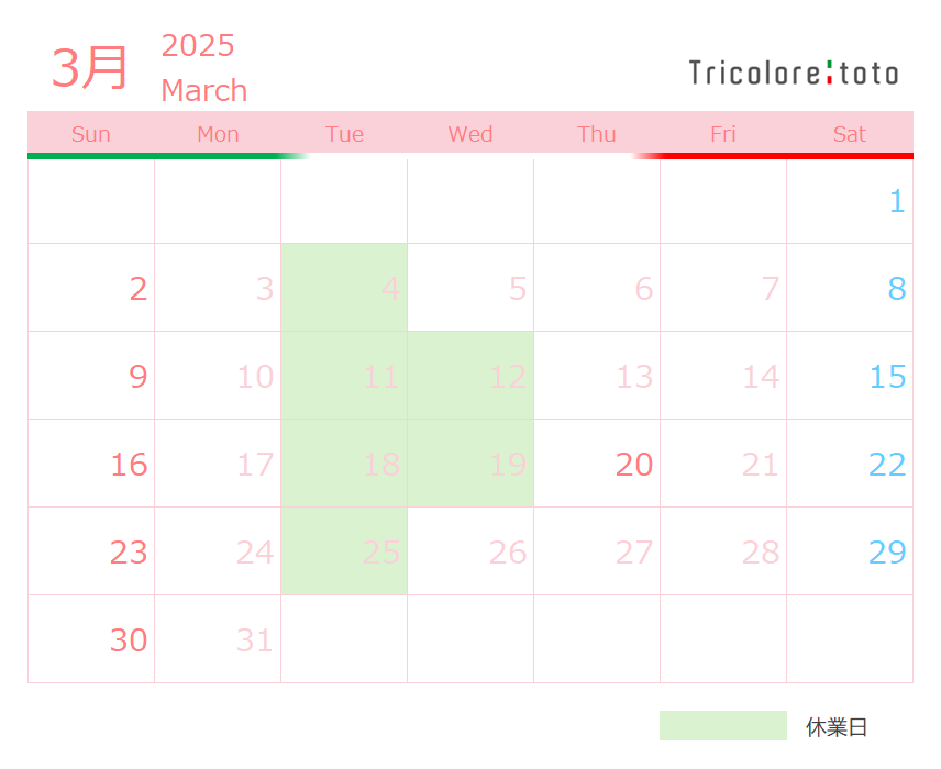 3月定休日のご案内