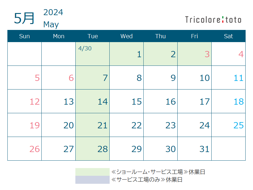5月定休日のご案内