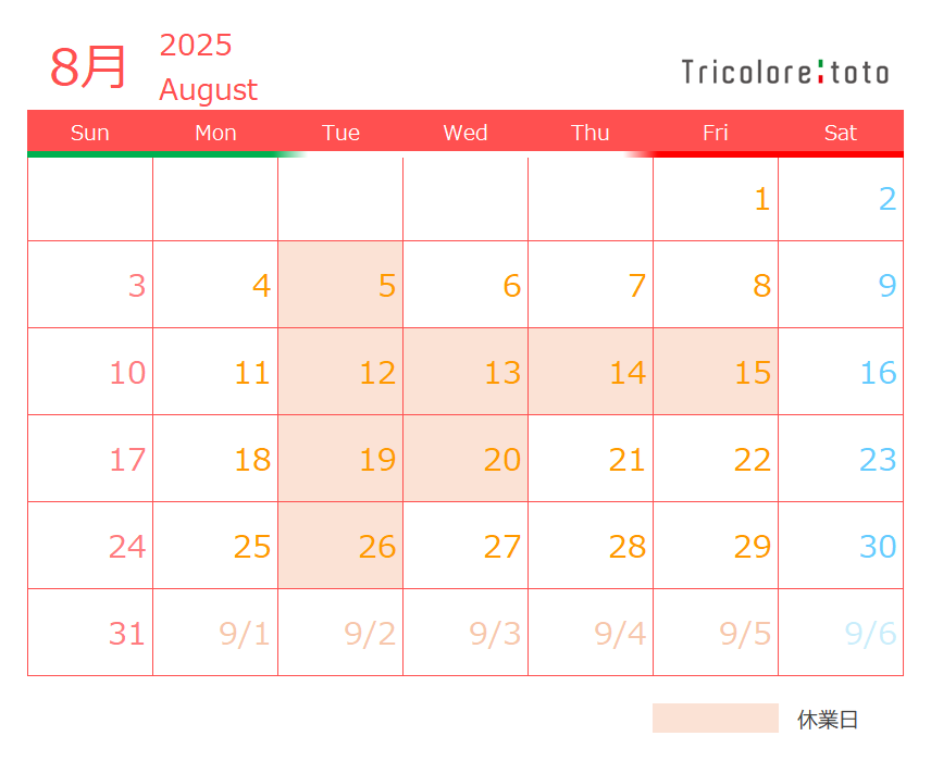 8月定休日のご案内